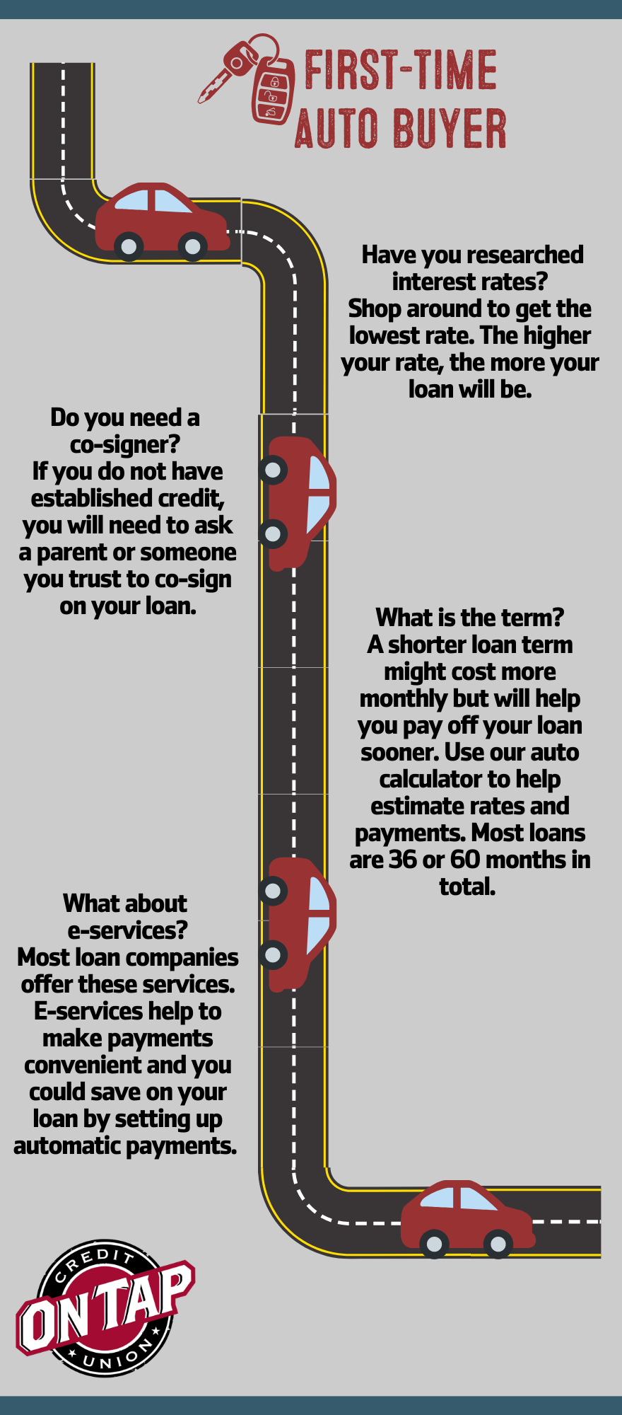 On Tap Credit Union offers flexible financing for new and used vehicles with transparent rates and no dealer markups. Apply online, get pre-approved, choose your vehicle, and enjoy clear monthly payments that fit your budget.
